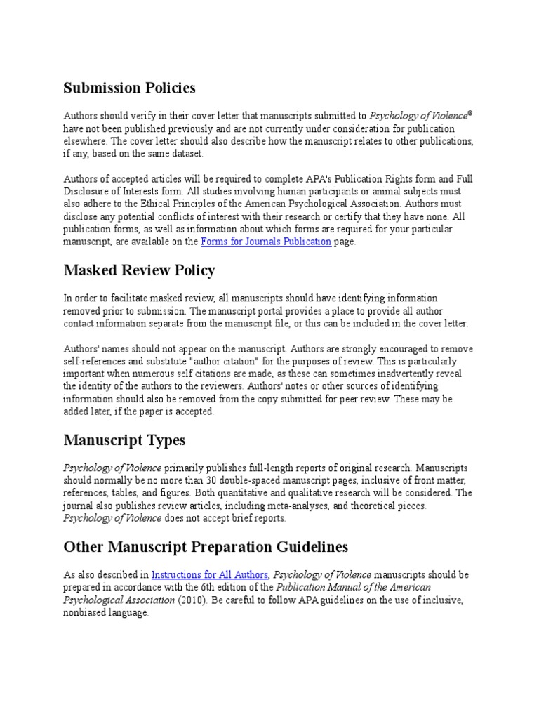 Manuscripts should be written in standard english, following the style outlined in the publication manual of the american psychological association, 6th edition.